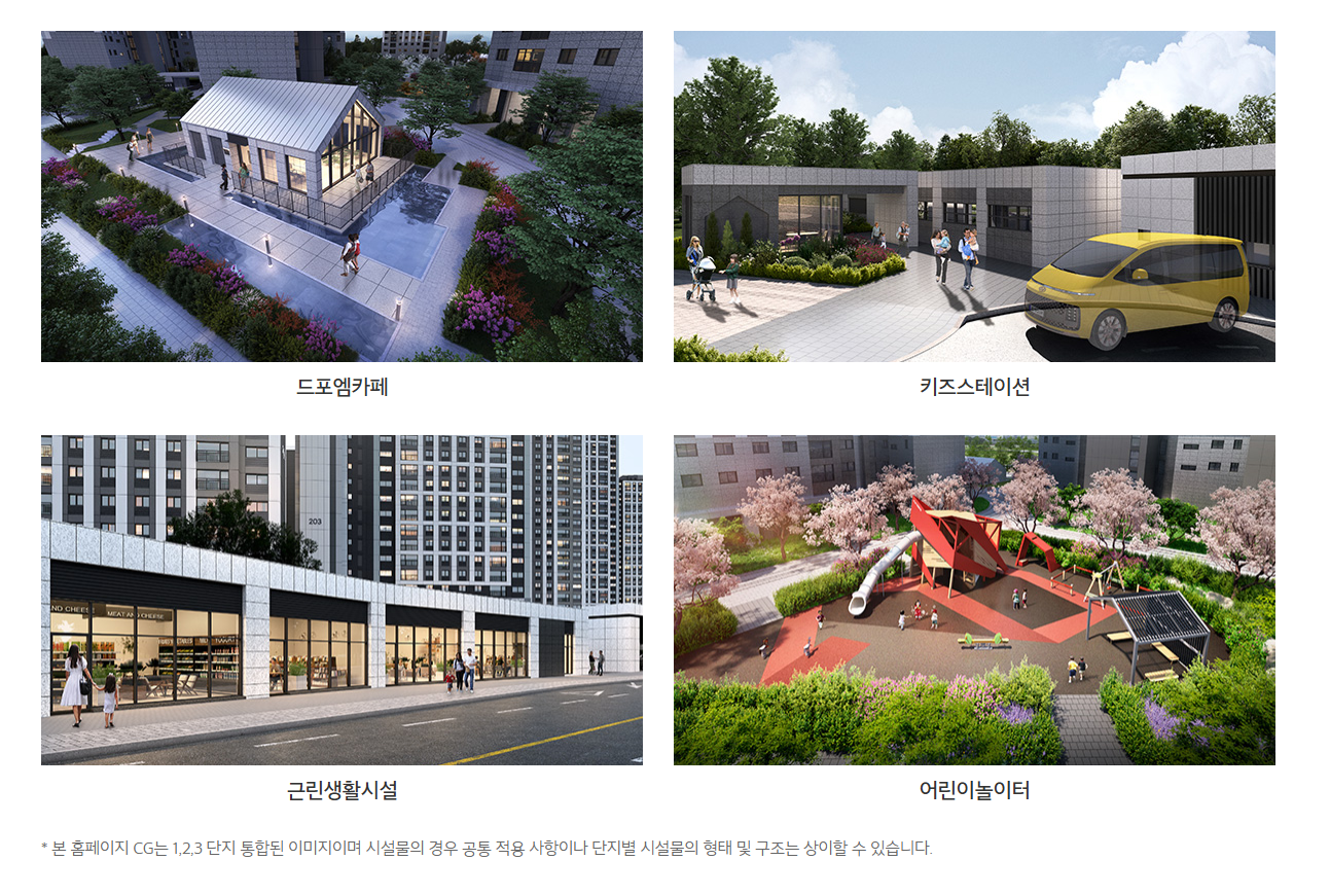 지상은 차 없는 공원형으로 계획해 아이 동선과 어른의 휴식 동선이 자연스럽게 분리됩니다. 다양한 수목과 썬큰, 산책로, 어린이 놀이터, 그리고 통학 대기를 돕는 키즈 스테이션까지—일산 이편한세상 메이포레 가 ‘매일의 편안함’을 어떻게 설계했는지 확인할 수 있는 대목입니다.