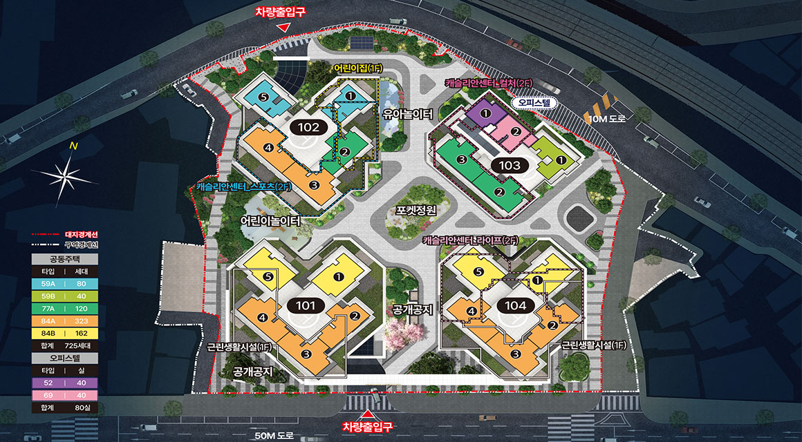 대단지의 장점은 커뮤니티에서 드러납니다. 피트니스, 실내 골프 연습, 사우나 같은 라이프케어 프로그램에 더해 작은 도서관과 스터디, 라운지형 카페를 넣어 평일 저녁과 주말의 일상 리듬을 단지 내부에서 소화하기 쉽게 했습니다. 실내 키즈 플레이 룸과 맘 라운지는 육아 동선을, 코워킹 라운지는 재택·하이브리드 근무 동선을 세심하게 지원합니다. 지상은 차량을 배제하고 보행 동선을 녹지와 연결해 어린 자녀나 어르신과 함께 생활하는 가구의 체감 안전을 높였고, 포켓 가든과 그늘 쉼터를 곳곳에 배치해 사계절 이용성을 고려했습니다. 공동 현관의 위생 설비와 조명 계획도 세세하게 설계되어 야간 귀가 동선의 피로를 줄여줍니다.