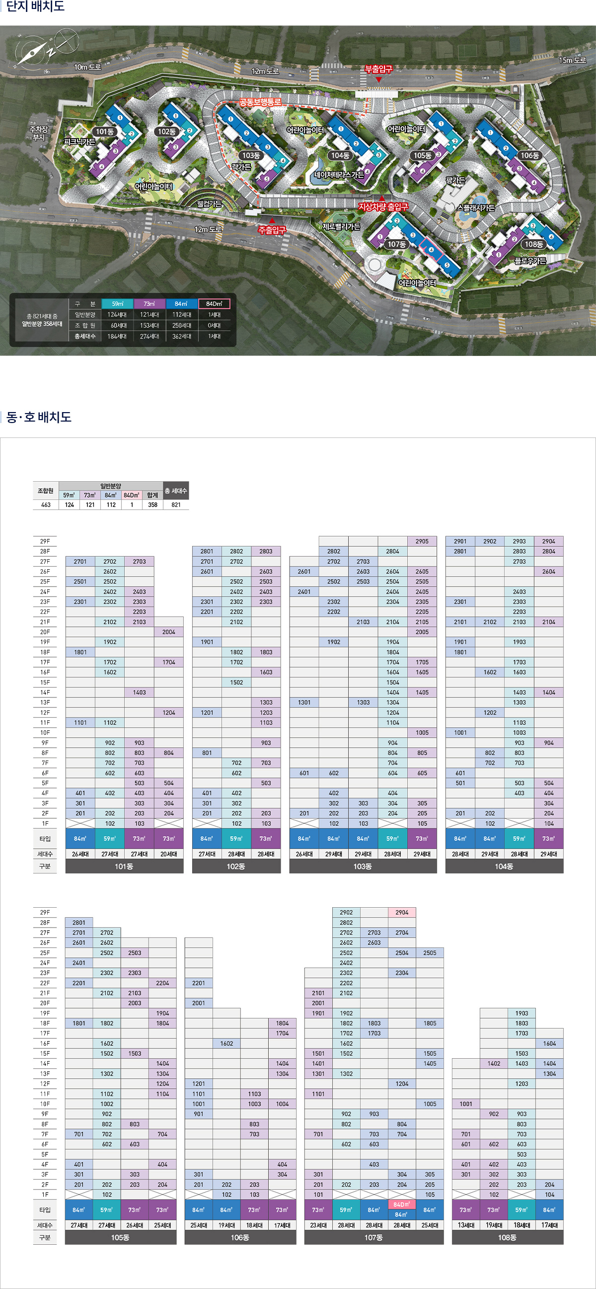 더샵 당리 센트리체는 부산 사하구 당리동 54번지 일원에 조성되며 지하 4층 지상 29층 8개 동, 총 821세대로 구성됩니다. 일반분양 물량만 300세대 이상이라 초기 입주 커뮤니티가 빠르게 안정화될 가능성이 큽니다. 주차는 약 1,000대 규모로 가구당 1대 이상이 가능하며, 동별 분산 배치로 피크 시간대에도 동선이 비교적 여유롭습니다. 건폐율과 용적률이 합리적으로 설계되어 동간 이격이 넓고 채광과 통풍을 받치기 위한 단지 레이아웃도 인상적이었습니다.