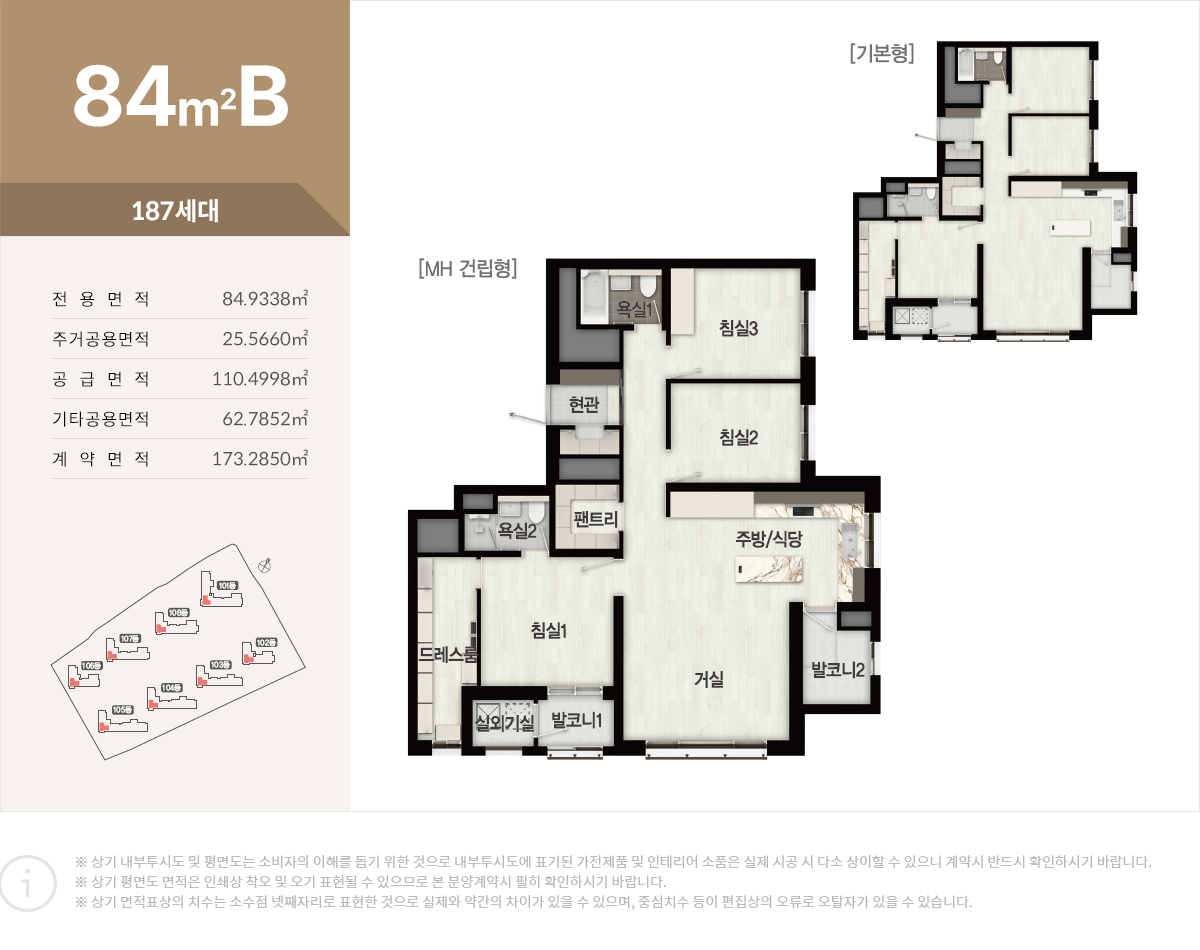 상품 구성은 75, 84A/B, 110 타입으로, 선호도 높은 중형부터 넉넉한 대형까지 단계적으로 제시됩니다. 전 타입은 주방의 기능을 강화했습니다. 일자형과 기역자형을 상황에 맞게 적용해 조리·수납·식사의 흐름을 간결하게 만들고, 인접 팬트리와 발코니 동선을 짧게 묶어 가사 효율을 높였습니다. 대형 드레스룸과 현관 창고, 다중 팬트리로 수납 스트레스를 줄였으며, 110 타입에는 알파룸을 더해 서재·취미실·게스트룸 등으로 유연하게 활용할 수 있습니다. 남향 위주 배치와 70미터 이상 동간 거리로 일조와 조망을 지켜 저층까지 체감 품질을 끌어올린 점도 용인 고진역 대광로제비앙의 강점입니다.
