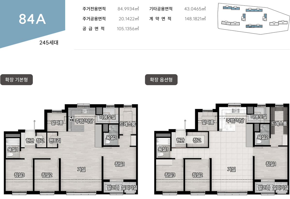 실사용을 키우는 평면, 84·107㎡의 투트랙