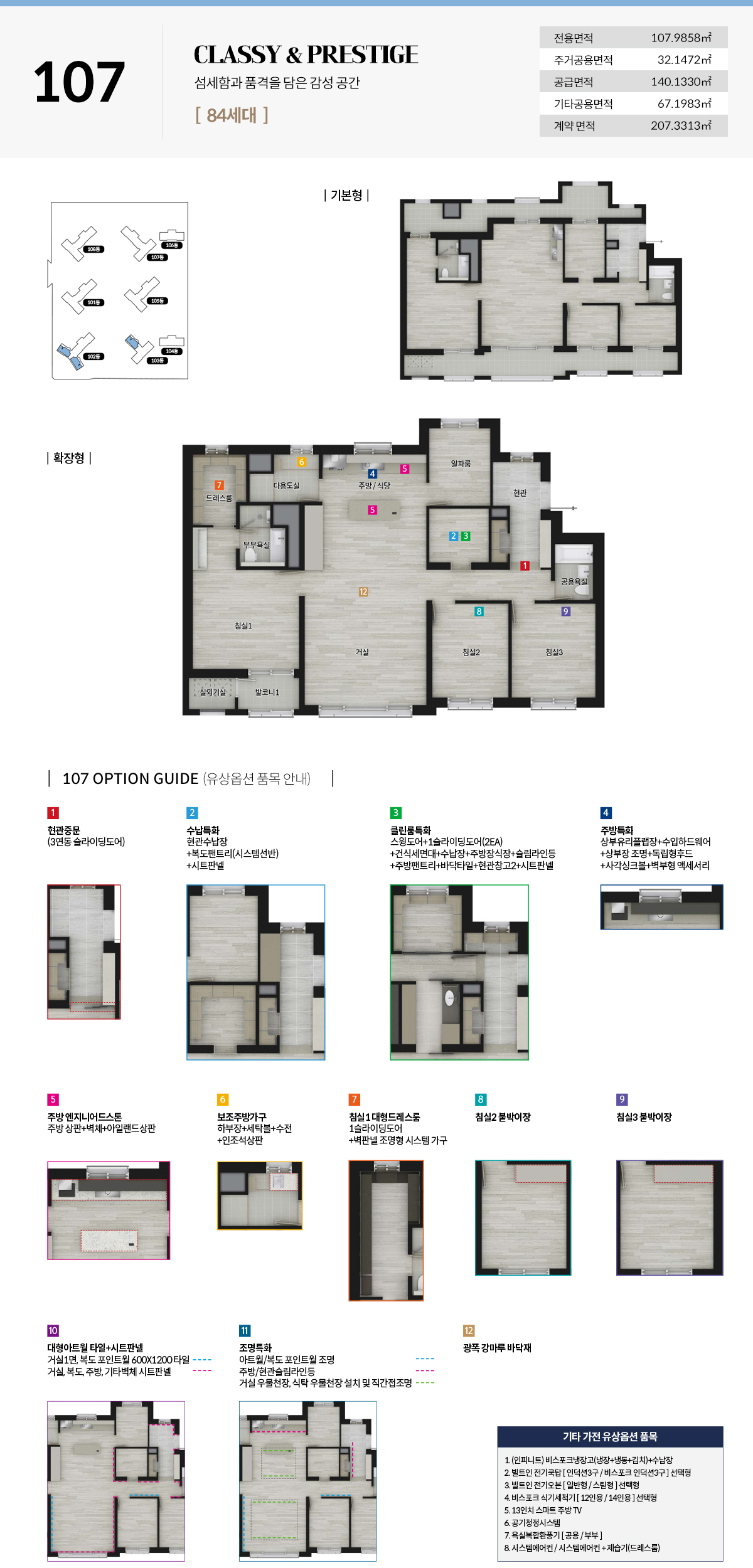 발코니 확장 시 아트월 타일, 김치냉장고 장, 시스템 가구 등 실수요자 선호 품목이 기본에 가깝게 제공됩니다. 주방 아일랜드 하부장, 전동 빨래 건조대, 주방 TV 등 손이 자주 가는 지점의 배려가 돋보였고, 유상 옵션으로 공기청정 시스템을 더해 사계절 실내 컨디션을 일정하게 유지할 수 있습니다. 이런 디테일은 평택 화양 동문 디 이스트를 오랫동안 편하게 쓰게 만드는 장치들입니다.