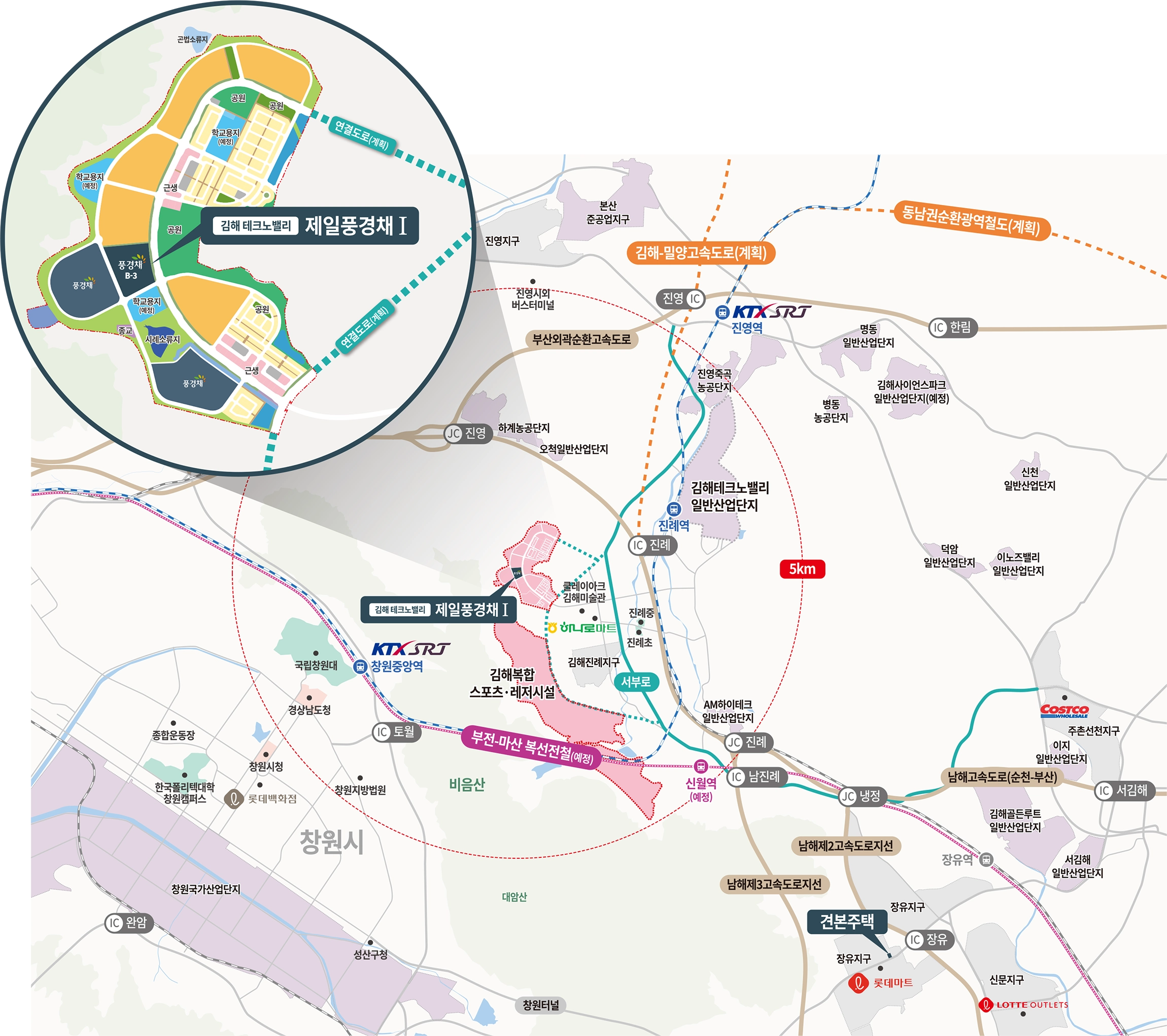 테크노밸리 일반산단·하이테크산단 등 인근 산업단지에는 다수의 기업과 근로자가 포진해 안정적인 임대 수요가 기대됩니다. 더불어 비음산 터널, 진례·마산 축의 복선 전철 신설 추진 등 교통 인프라가 확장되면 창원권과의 더블 생활권이 현실화됩니다. 99만7천㎡ 규모의 진례시례지구 도시개발사업과 김해 테크노밸리 제일풍경채가 만들어 내는 대단지 연쇄 효과는 상권 형성과 서비스 업종의 다양화로 이어져 거주의 편의와 자산의 안정성을 함께 끌어올릴 가능성이 큽니다.