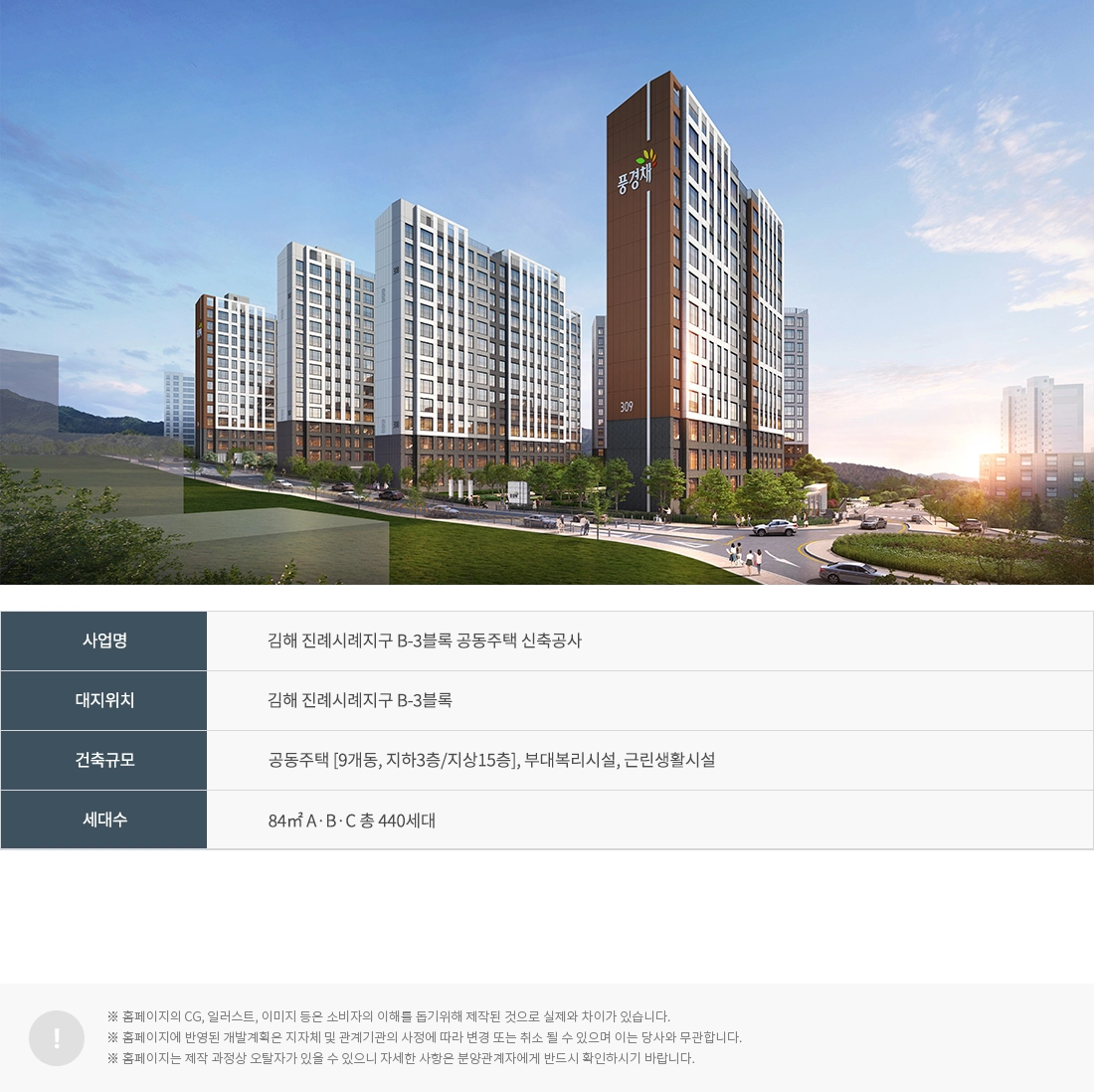 김해 테크노밸리 제일풍경채는 경상남도 김해시 진례면 테크노밸리 일원, 진례시례지구 B-3블록에 자리한 민간임대아파트입니다. 지하 3층부터 지상 15층까지 9개 동, 총 440세대로 구성되며, 모든 세대가 전용 84㎡ 단일면적이지만 A·B·C 세 가지 타입으로 세분화해 선택 폭을 넓혔습니다. 전 세대 남향 위주 배치와 개방형 평면을 통해 채광 효율을 극대화했고, 4베이 4룸 구조를 기반으로 환기와 수납, 공간 활용성을 균형 있게 잡았습니다. 김해 테크노밸리 제일풍경채가 보여 주는 이 같은 기본기는 장기 거주에 적합한 토대를 마련합니다.