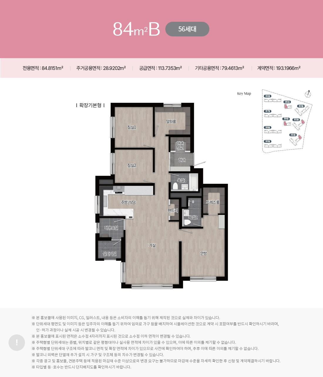 A타입은 가족 생활 동선을 가장 먼저 고려해 주방과 거실, 방과 방 사이 이동이 자연스럽게 이어지도록 구성했습니다. B타입은 발코니 확장과 팬트리를 통해 계절 수납과 일상 정리가 쉬워지고, 대형 가전과 취미 장비를 깔끔하게 숨길 수 있습니다. C타입은 알파 공간의 활용도를 높여 서재나 취미실, 놀이방 등 가족 생애 주기에 맞춘 변주가 가능합니다. 전 타입 공통으로 4베이 4룸 구조가 적용돼 맞통풍이 수월하고, 선택 사양으로 시스템 에어컨 등 편의 사양을 더해 사계절 쾌적함을 확보할 수 있습니다. 실사용성에 집중한 이러한 평면 전략은 김해 테크노밸리 제일풍경채의 일상 만족도를 끌어올리는 핵심입니다.